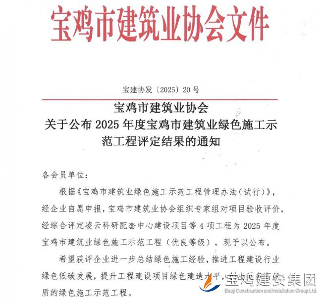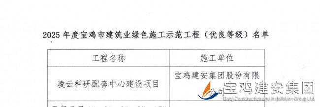 公司承建的凌云科研配套中心建設(shè)項(xiàng)目榮膺“2025 年度寶雞市建筑業(yè)綠色施工示范工程”稱號(hào)